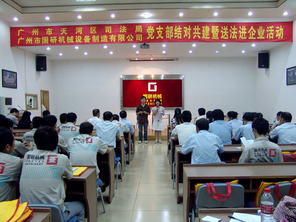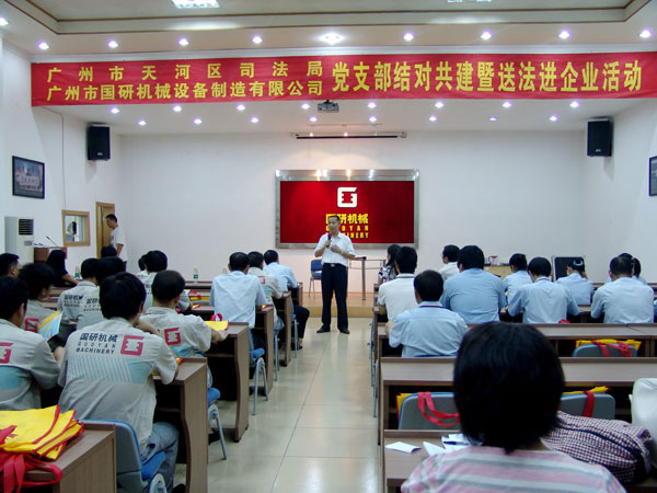 9月7日下午,广州市天河区司法局党支部和文教工作队一行18人在局长罗育辉和副局长曾晓云的带领下,来到广州市世界杯网址入口_2026世界杯押注网址 设备制造有限公司举行党支部结对共建暨送法进企业活动。